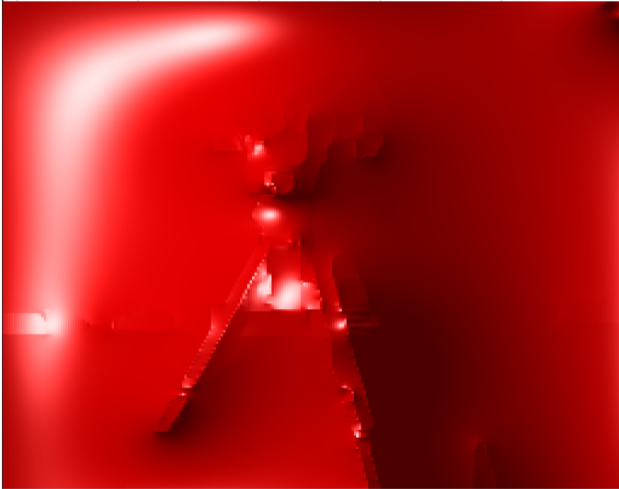 4 subdomains. The interfaces of the subdomains are marked in red and blue. The inpainting